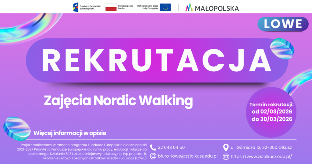 Zajęcia Nordic Walking – rusza rekrutacja! 🚶♀️🌿 Chcesz zadbać o kondycję, poprawić swoją formę i spędzić czas na świeżym powietrzu w świetnej atmosferze?Zapraszamy na BEZPŁATNE zajęcia Nordic Walking, podczas których: ✔️ nauczysz się prawidłowej techniki marszu z kijami,✔️ poprawisz swoją wydolność i wzmocnisz całe ciało,✔️ odciążysz kręgosłup i stawy,✔️ aktywnie spędzisz czas w grupie i […]