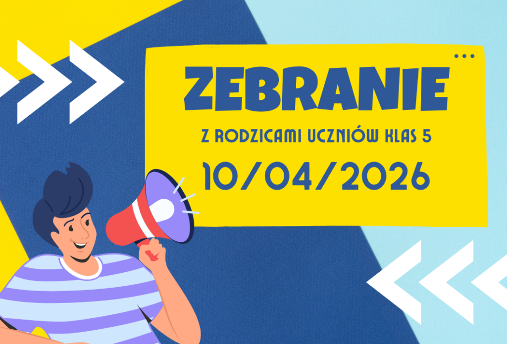 Zebranie z rodzicami uczniów klas V Serdecznie zapraszamy rodziców uczniów klas V 10 kwietnia o godzinie 16:00 na spotkanie. Sale do których Państwo udadzą się przydzielone są zgodnie z przedstawionym poniżej harmonogramem i informacją umieszczoną przy drzwiach wejściowych. 5 A – sala E.2 5 B – sala A.9 5 C – sala A.16 5 D […]